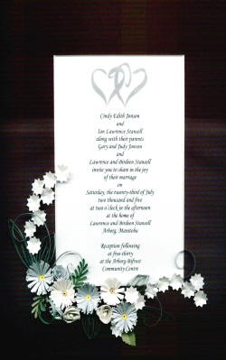 Paper quilled invitations make great keepsakes for showers, weddings, and anniversaries. Each quilled mat will be uniquely designed to complement your invitation, with your choice of mat colour and flowers,
