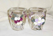 K5:Glass Tealight holders with a variety of quilled flowers on a gold background.